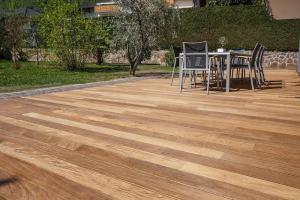 Hochwertige Echtholzdielen für die Terrasse oder den Balkon betonen die natürliche Form des Baumes und werden deshalb in unterschiedlichen Breiten und in fallenden Längen produziert. Durch die handwerkliche Herstellung werden die Terrassendielen zu echten Unikaten.